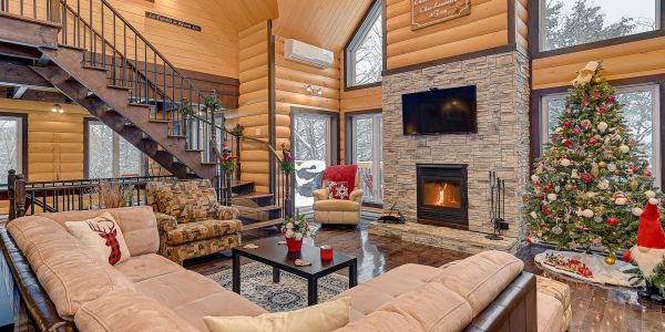 Chalet haut de gamme à la fois rustique et chaleureux avec une décoration thématique de saison en saison tout en offrant un excellent confort.