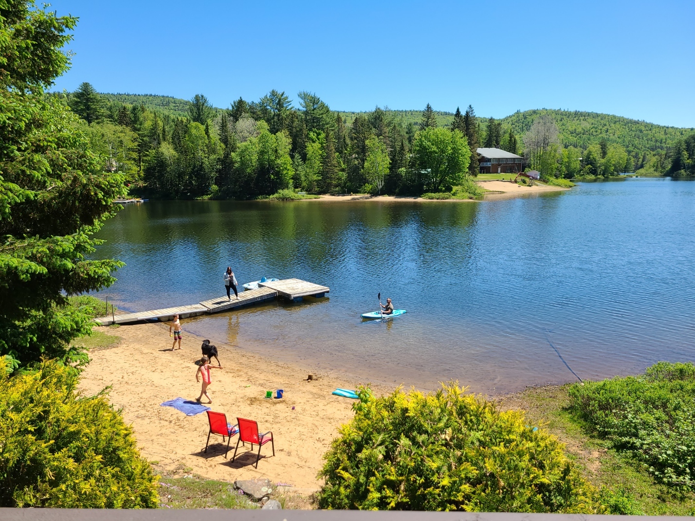 Offrez-vous un séjour inoubliable dans ce ravissant chalet situé directement au bord d'un lac à l'eau exceptionnellement limpide, avec une plage de sable privée au fond naturel sablonneux, parfait pour la baignade, les jeux d'eau et les journées à relaxer au soleil en famille.