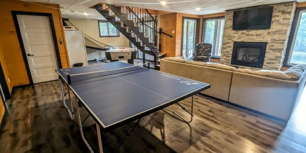 Sur notre immense terrain de 7 500 000 pi2, nous avons 6 gros chalets de luxe de 6 chambres pour 20 personnes, tous identiques et tous situés directement sur le bord de notre superbe lac White Rocks avec tous leur propre quai. Avec tous nos éléments récréatifs détaillés ci-bas, vous ne vous ennuierez pas, même les jours de pluie!