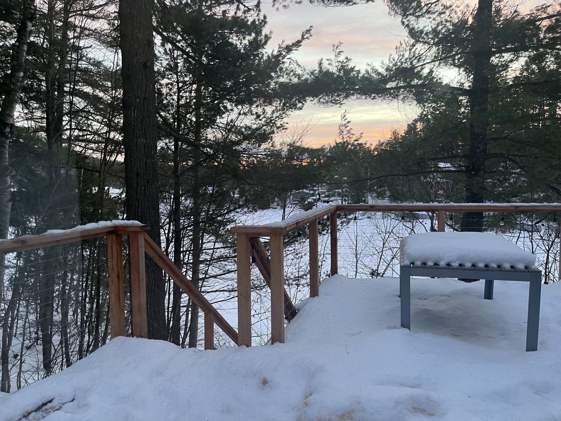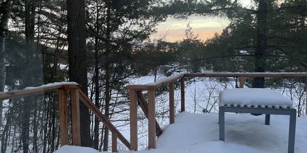 À l’extérieur, le calme absolu. Un grand terrain intime, entouré d’arbres, où les journées commencent avec le chant des oiseaux et se terminent autour d’un feu crépitant. À quelques minutes seulement des activités de plein air et des services essentiels.