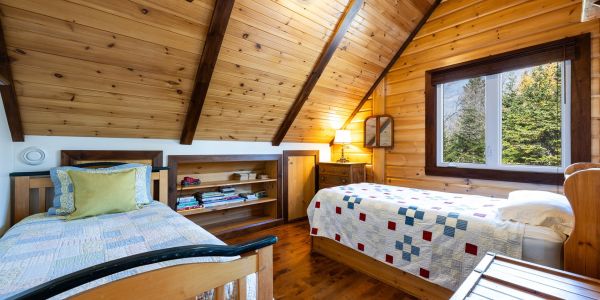 Idéal pour 8 personnes, le chalet compte 4 chambres, 3 salles de bain, air climatisé, une salle de jeux, une salle de télévision avec écran plasma 50 pouces, une cuisine toute équipée et un salon munis d’un beau foyer à combustion lente. Les planchers de l’étage principal et de la mezzanine sont en bois franc. Celui du sous-sol est chauffant pour votre confort. C'est l'endroit rêvé, pour se retrouver en famille ou entre amis.